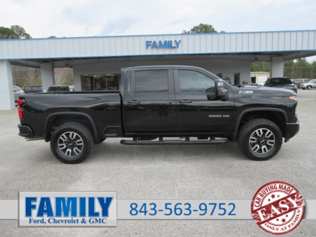 2024 Chevrolet Silverado 2500HD Crew Cab LT 4WD Z71 pkg with the 6.6L Gas engine has under 22k miles, and priced under $52 GRAND! Well equipped with Midnight Edition (all black exterior), Spray-in Bedliner, Black side steps, rear park assist, trailer app, trailer blind zone assist, surround vision, sunroof, captains chairs with center console, rear power slide window, Heated seats, heated steering wheel, multi-flex tailgate, all weather floor liners, wireless charging, Apple CarPlay/Android Auto, Sirius Satellite radio, Drive modes, Front crash warning, Lane keeping, and so much more! Come see this Silverado 2500HD today!
