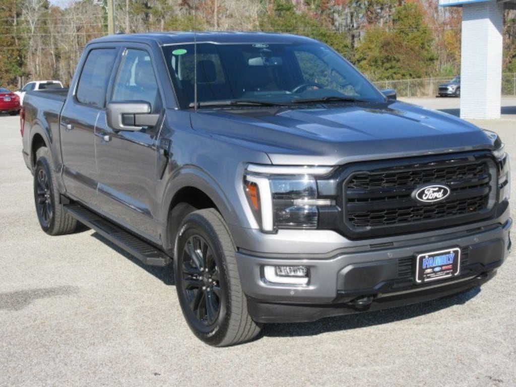 2024 Ford F-150 Lariat SuperCrew 4WD with 5.0L V8 engine is a CARFAX 1 Owner with ZERO Accidents has under 28k miles and priced under $59 GRAND! Loaded with heated/ventilated seats, heated steering wheel, adaptive cruise, lane keeping, BLIS (blind spot), Navigation, Apple CarPlay/Android Auto, wireless charging, extended fuel tank, Black appearance package, side steps, FX4 pkg, all weather floor liners, and more! Come see this F-150 today!
